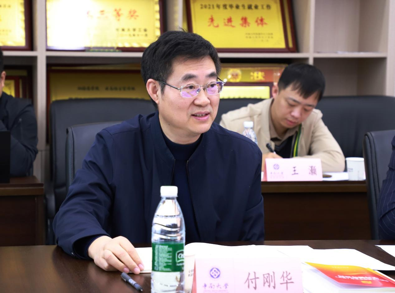 11月 12日下午,校黨委副書記付剛?cè)A帶隊到湘雅藥學(xué)院開展“十五五”規(guī)劃專題調(diào)研,會議在杏林校區(qū)湘雅藥學(xué)院 C401 會議室召開。宣傳部、學(xué)生工作部、人事處、本科生院、科學(xué)研究部、研究生院、發(fā)展規(guī)劃與學(xué)科建設(shè)處、國內(nèi)合作處、湘雅醫(yī)學(xué)院等職能部門負責(zé)人,湘雅藥學(xué)院“十五五”規(guī)劃編制工作組和發(fā)展規(guī)劃與學(xué)科建設(shè)處工作人員出席會議。會議由國內(nèi)合作處處長莫龍主持。